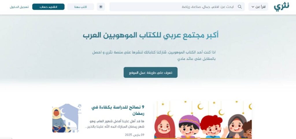 وهناك مجالات متعددة يمكنك النشر فيها علي موقع نثري: